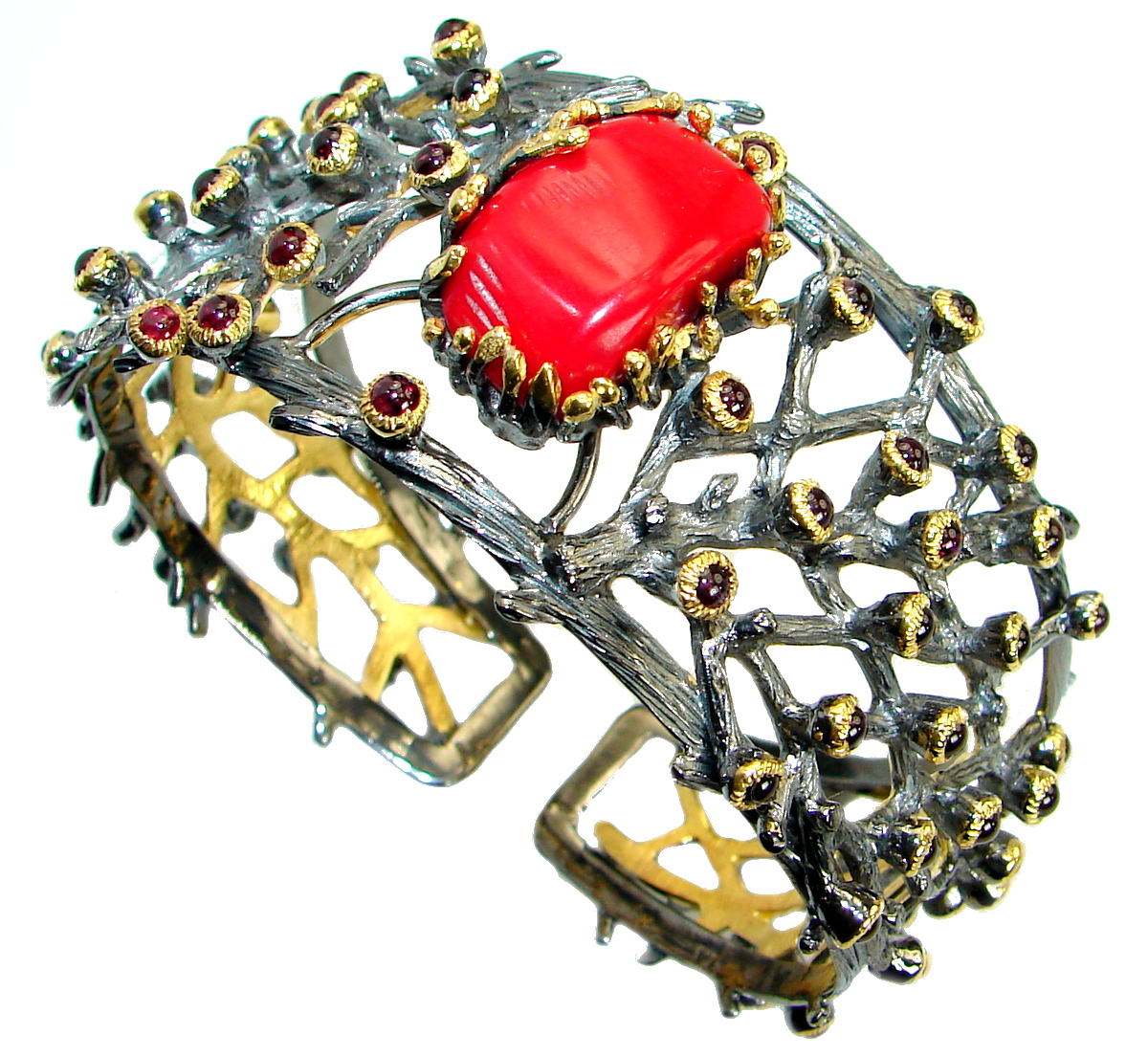Chunky Genuine Fossilized Coral 18 ct Gold Rhodium over .925 Sterling Silver Bracelet / Cuff
