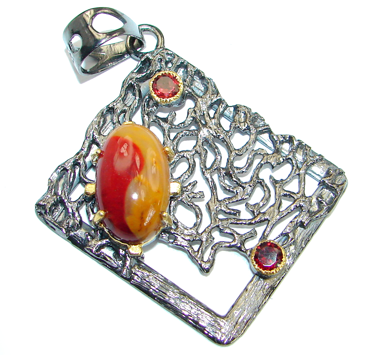 Huge Australian Bracciated Mookaite Jasper .925 Sterling Silver handcrafted pendant