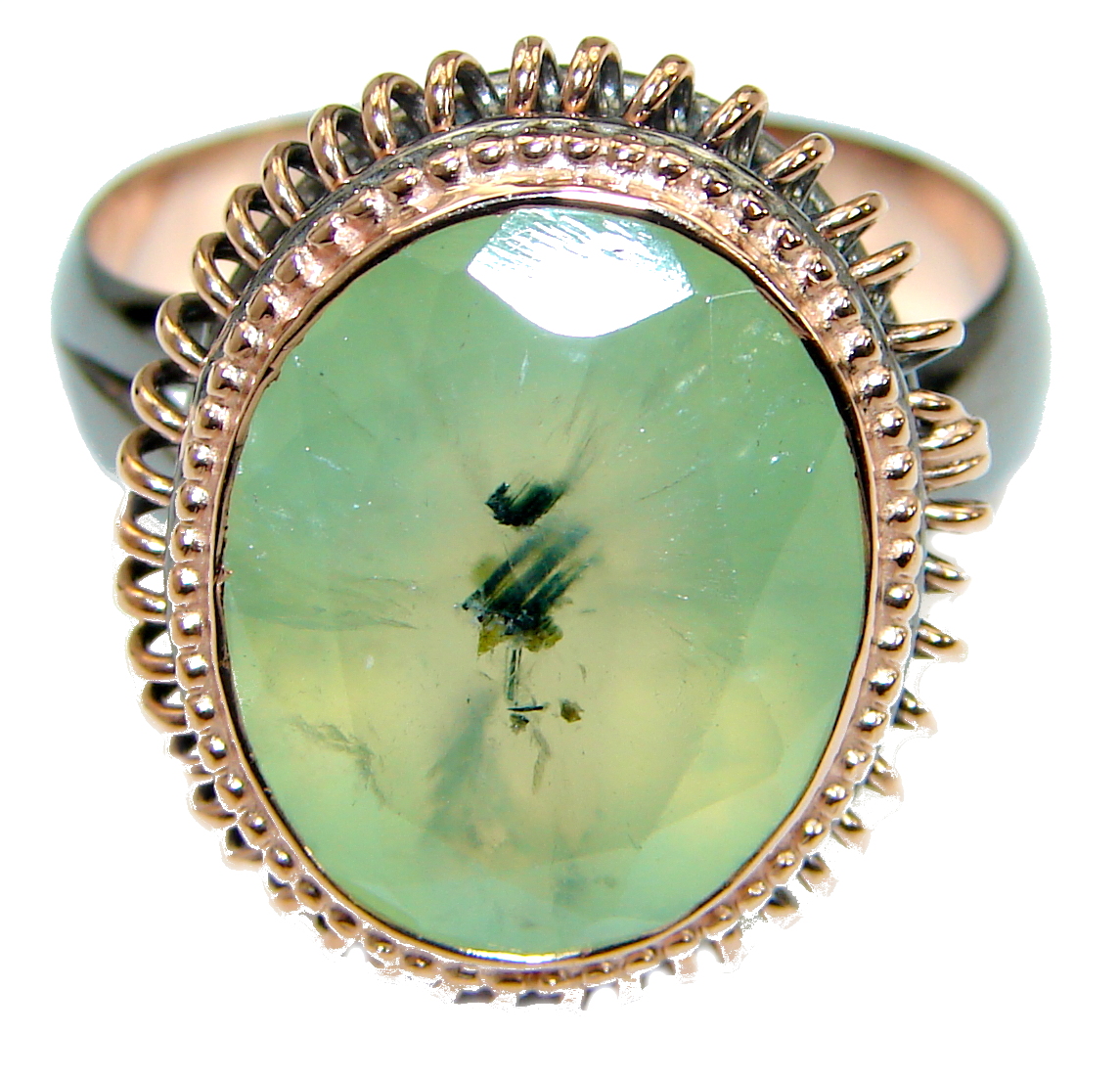 Supernova Moss Prehnite .925 Sterling Silver handcrafted ring; s. 6 adjustable