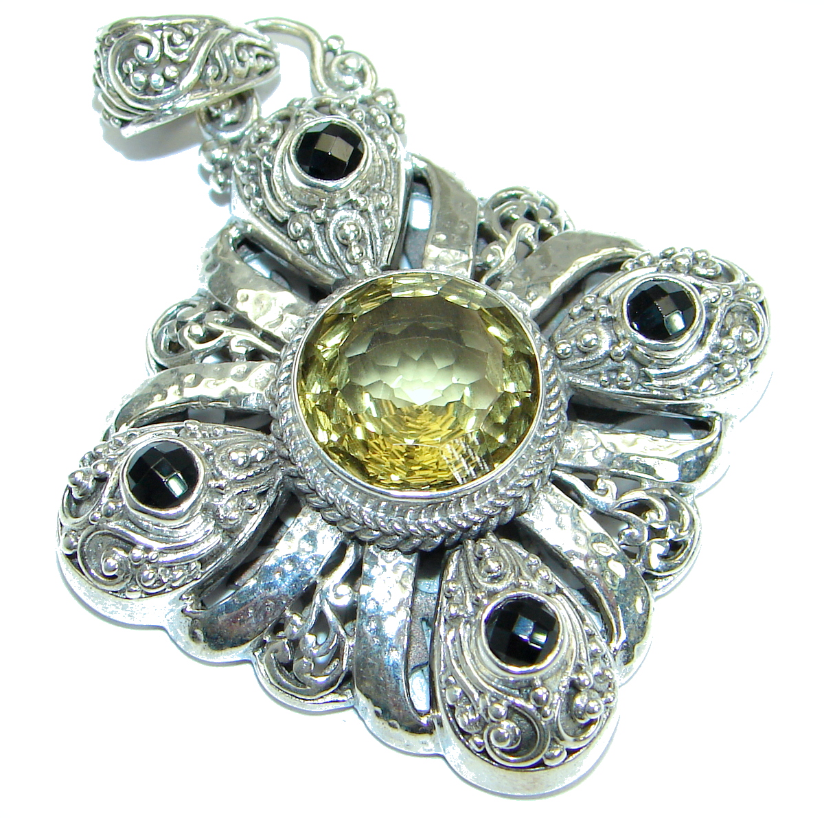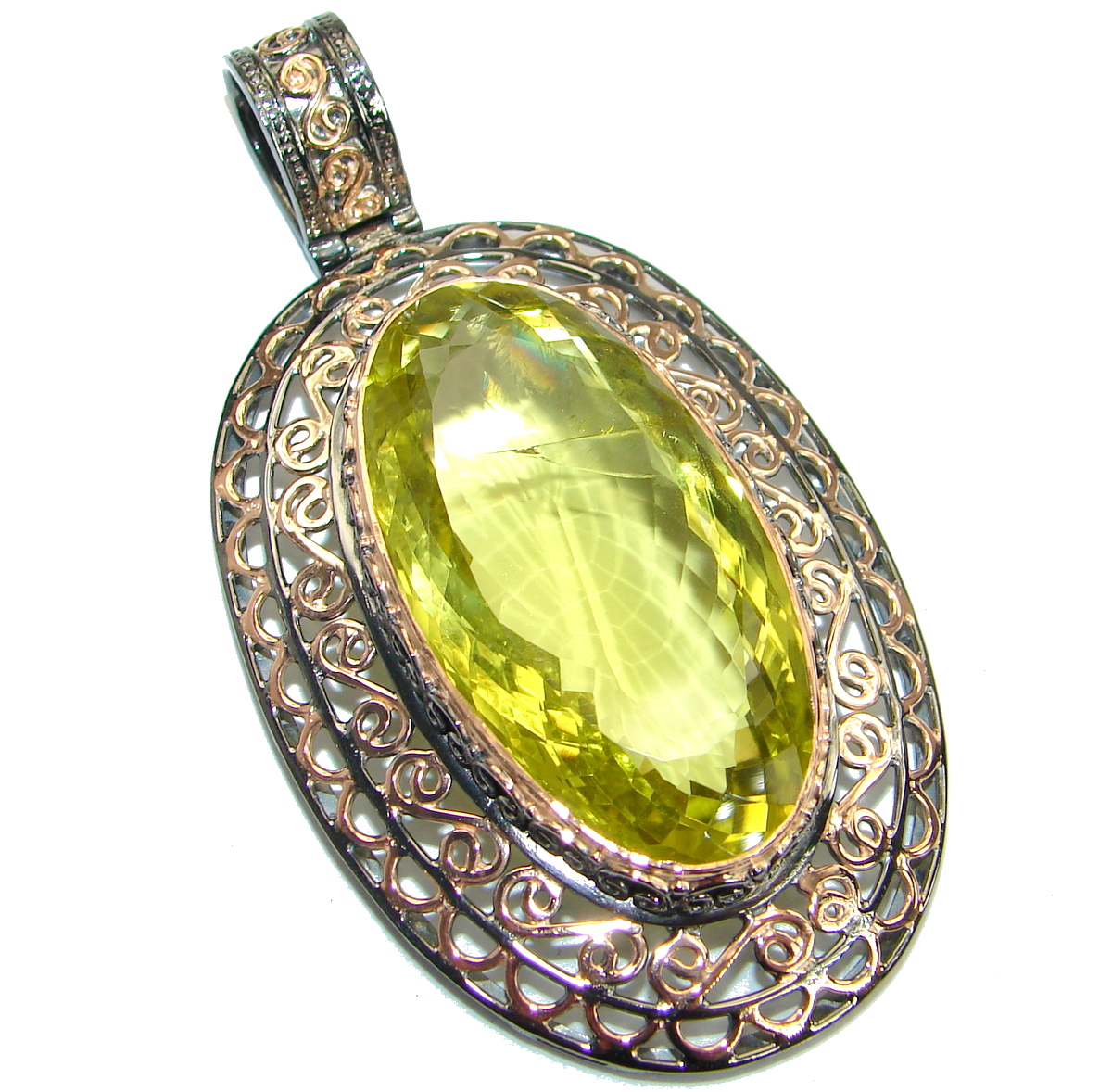 Vintage Design 75CT Genuine Lemon Quartz .925 Sterling Silver handcrafted pendant