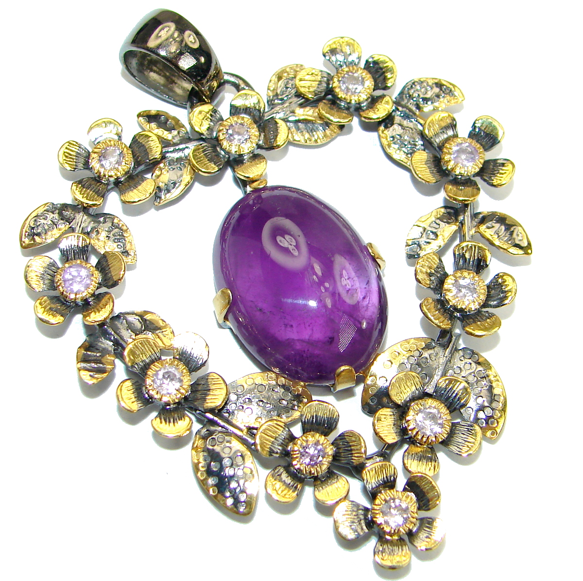 Rich Design Natural Amethyst 14K Gold over .925 Sterling Silver handmade Pendant