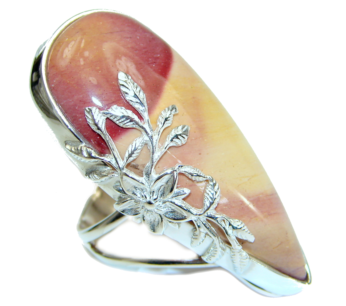Flawless Australian Mookaite .925 Sterling Silver Statement Ring size 8 adjustable