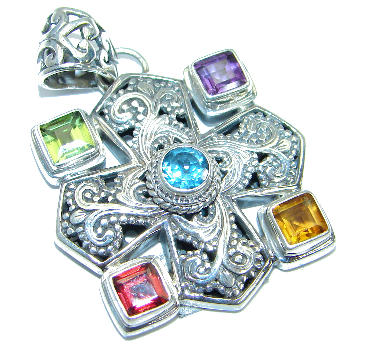 Large Aura Of Beauty Genuine Multigem .925 Sterling Silver Pendant
