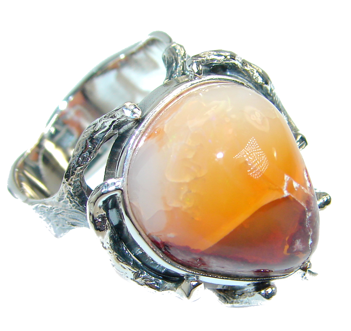 Mexican Opal oxidized .925 Sterling Silver handcrafted ring size 9