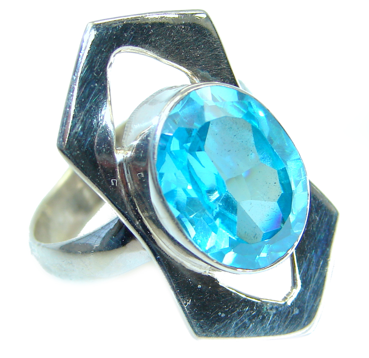 Fancy Cubic Zirconia .925 Sterling Silver Cocktail ring s. 9