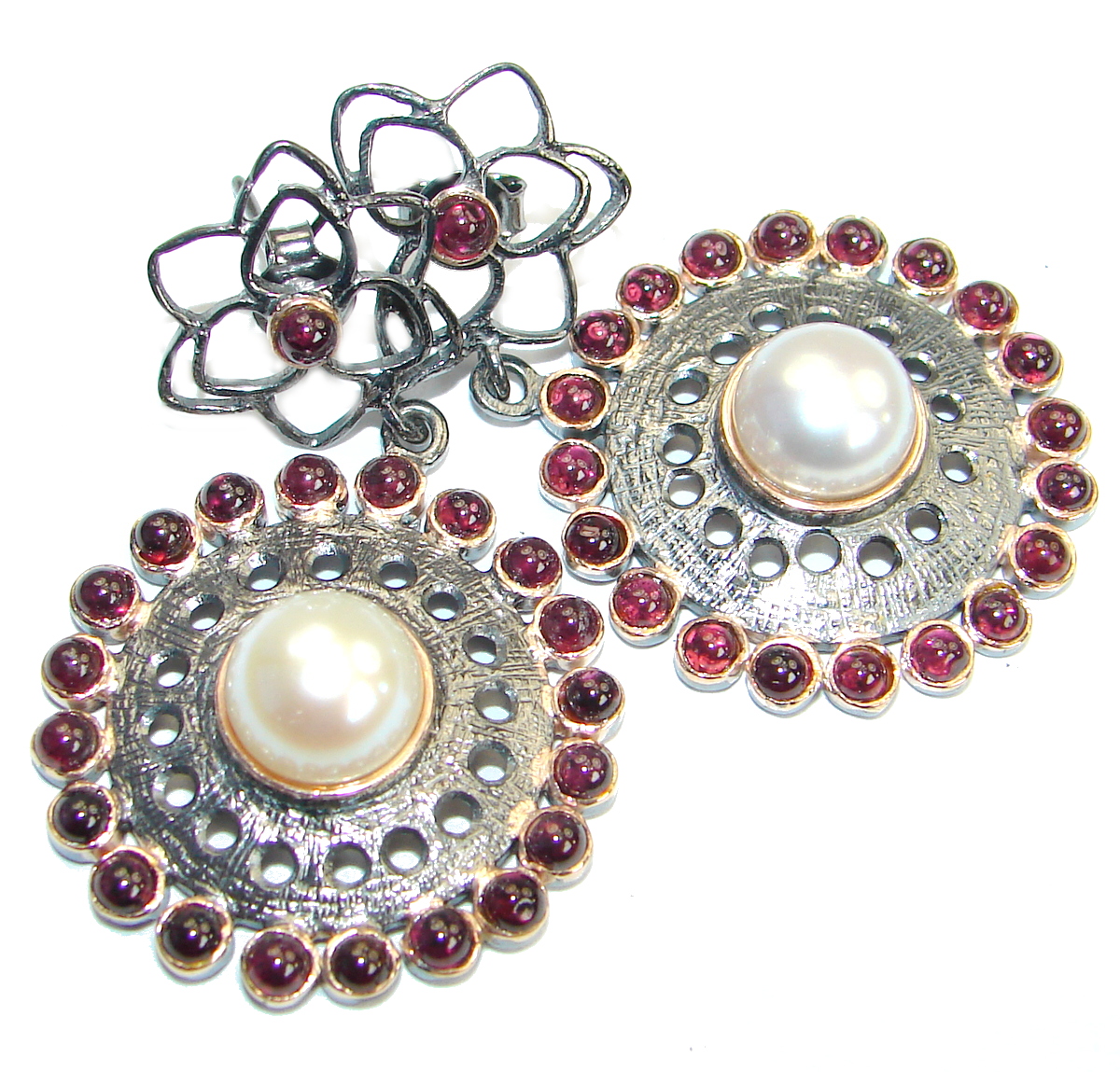 Classic Beauty Fresh water Pearl Gold Rhodium .925 Sterling Silver handmade stud earrings