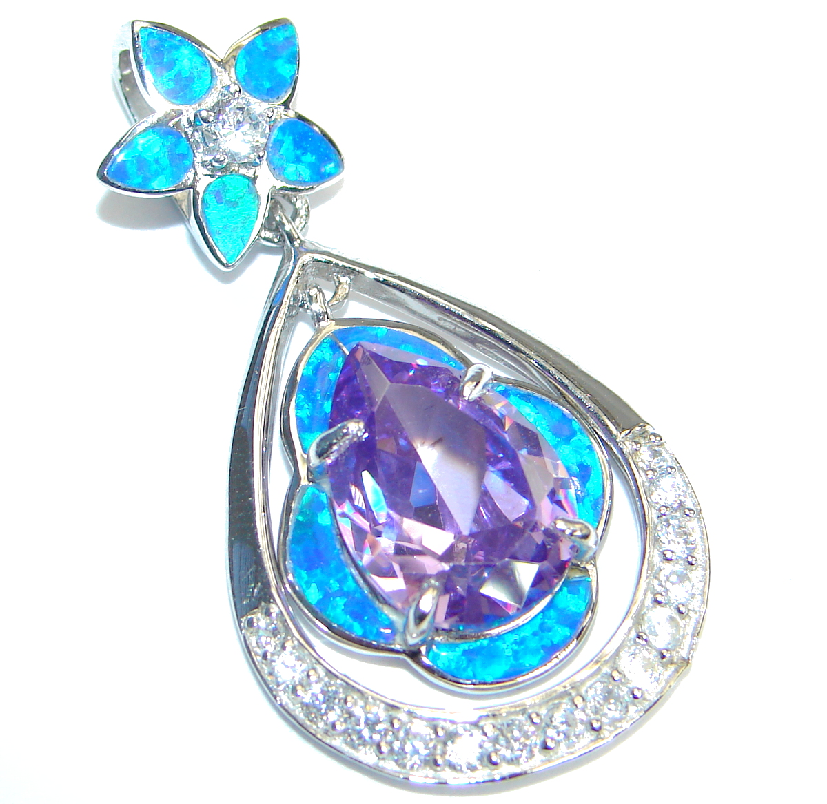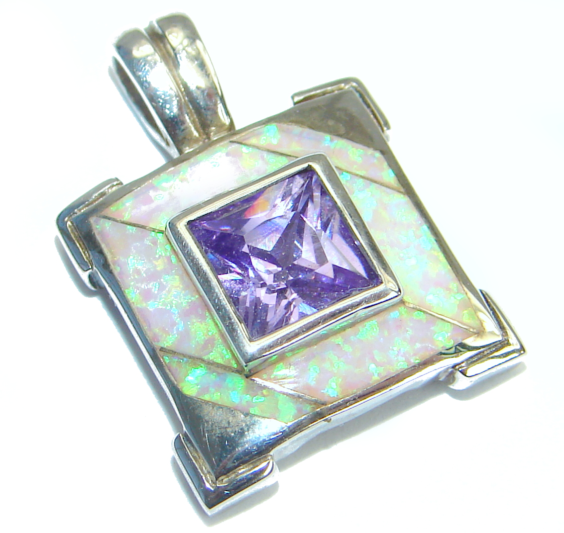 Great Cubic Zirconia Japanese Opal .925 Sterling Silver Pendant
