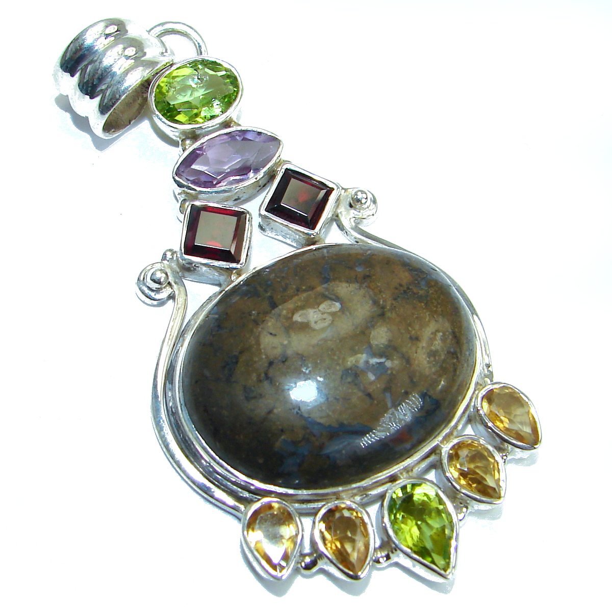 Vintage Design 40ct Genuine Imperial Jasper .925 Sterling Silver handcrafted pendant