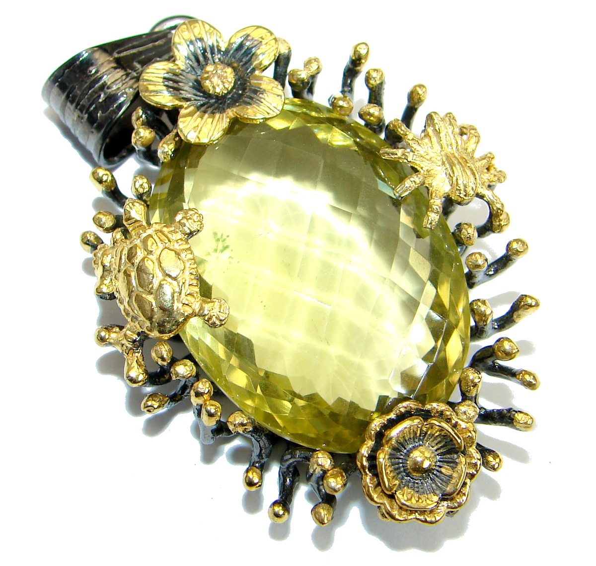 Vintage Design 75.2CT Genuine Lemon Quartz .925 Sterling Silver handcrafted pendant