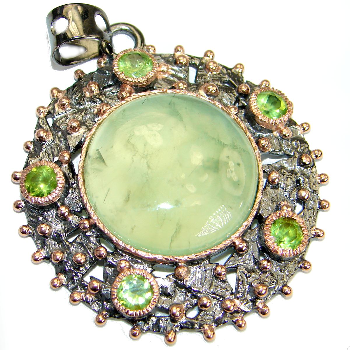 Natural Moss Prehnite 14K Gold over .925 Sterling Silver handmade Pendant