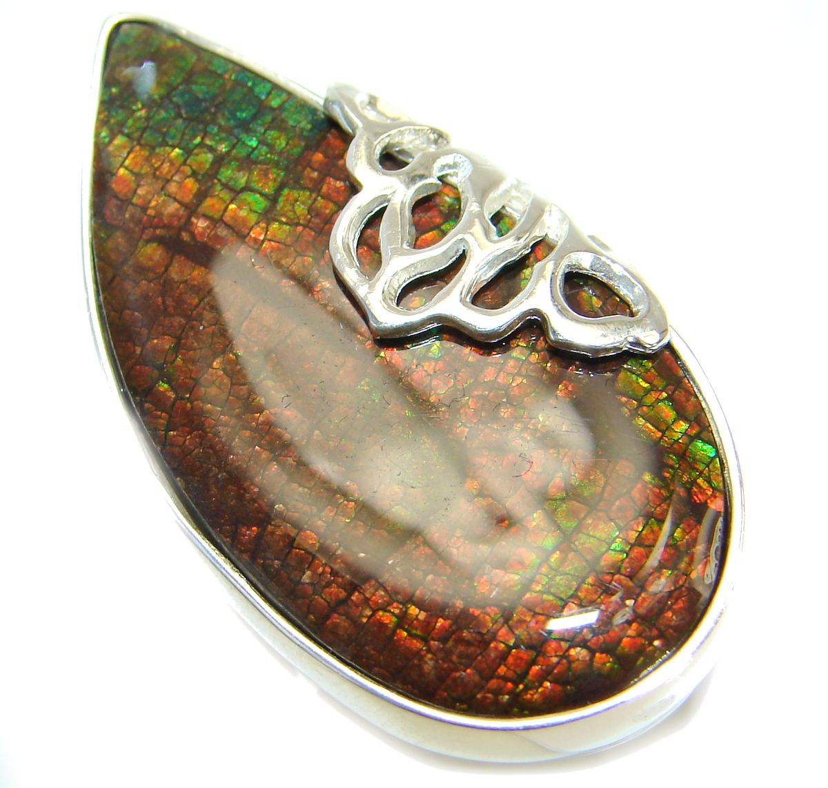 Large Genuine Canadian Ammolite .925 Sterling Silver handmade ring s. 7 adjustable