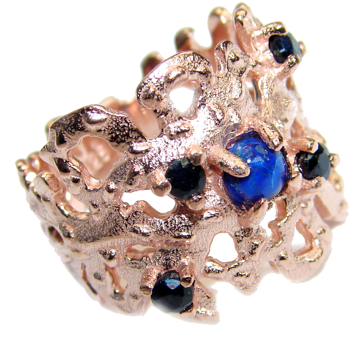 Unique Design genuine Lapis Lazuli Gold over .925 Sterling Silver handmade Cocktail Ring s. 6