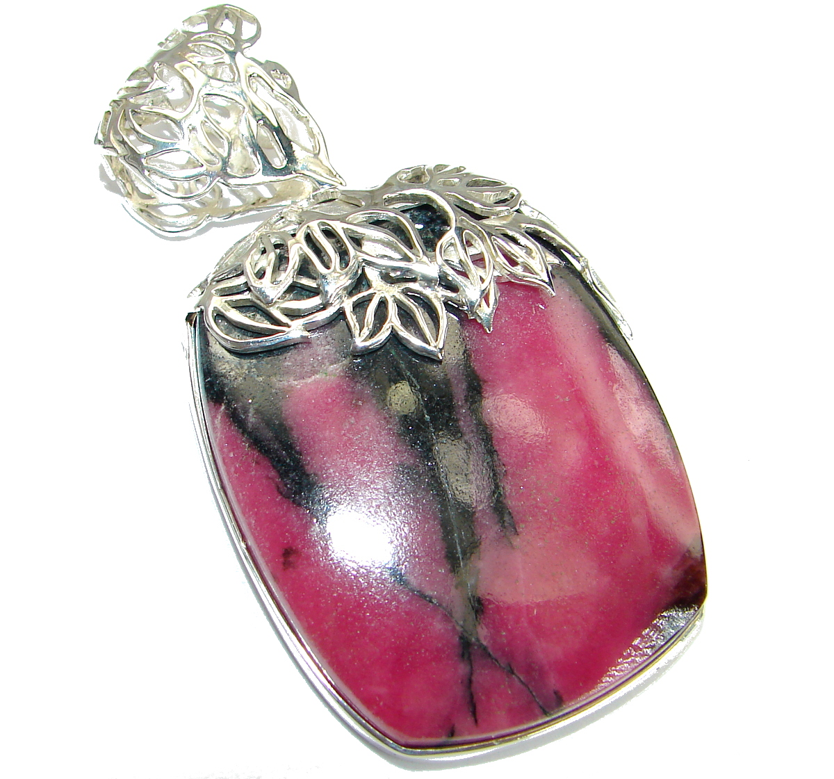 Huge Amazing Pink Rhodonite .925 Sterling Silver handmade Pendant