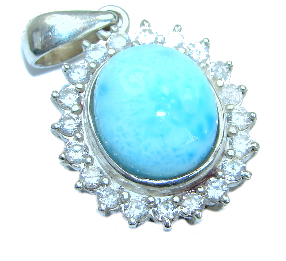 Huge Genuine Larimar .925 Sterling Silver handmade pendant