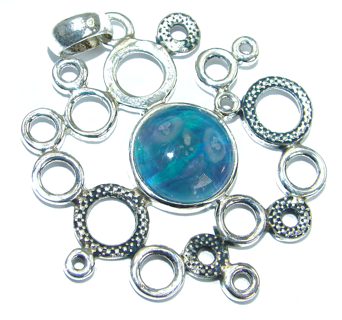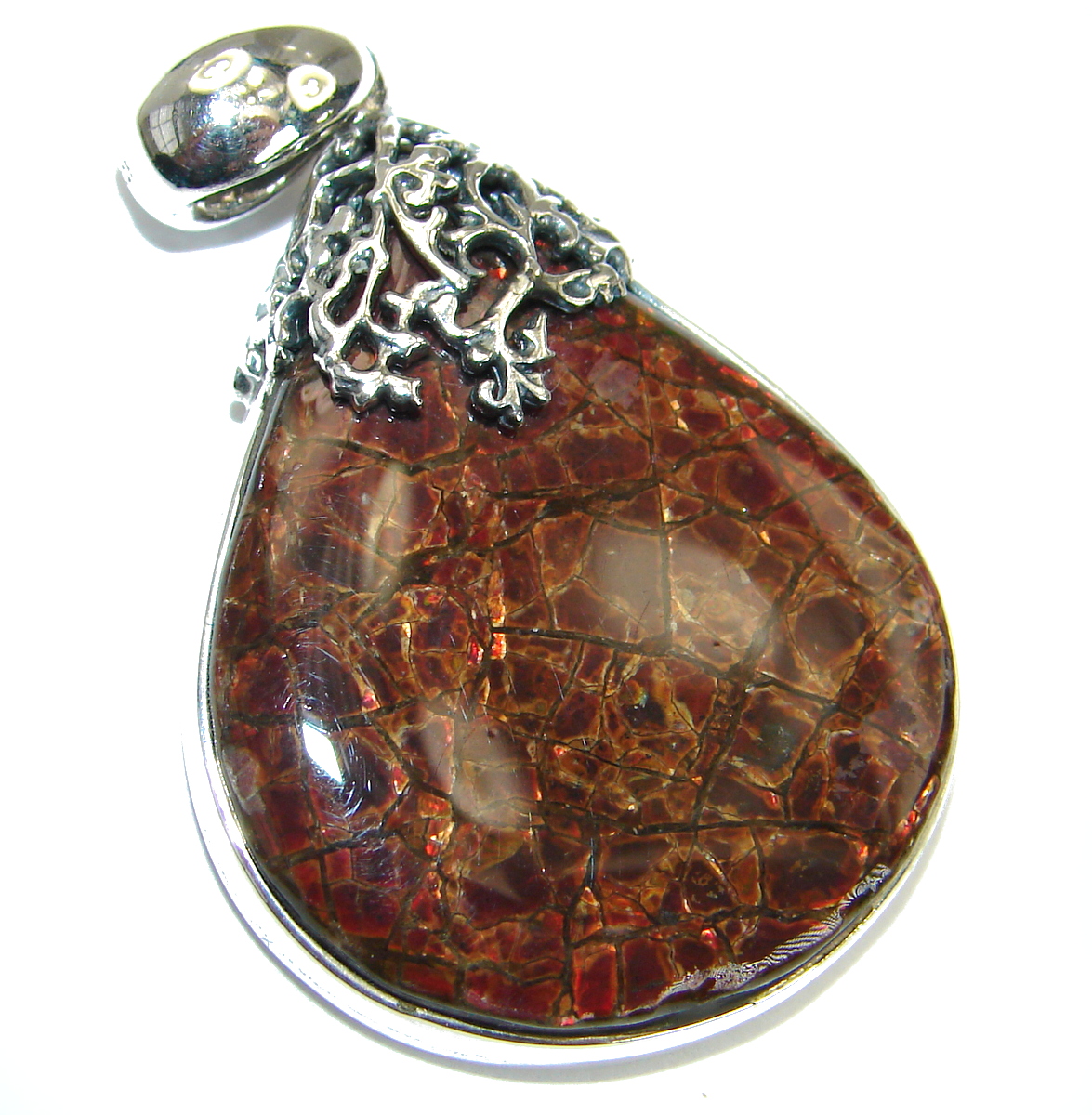 One of the kind genuine Ammolite .925 hammered Sterling Silver Pendant