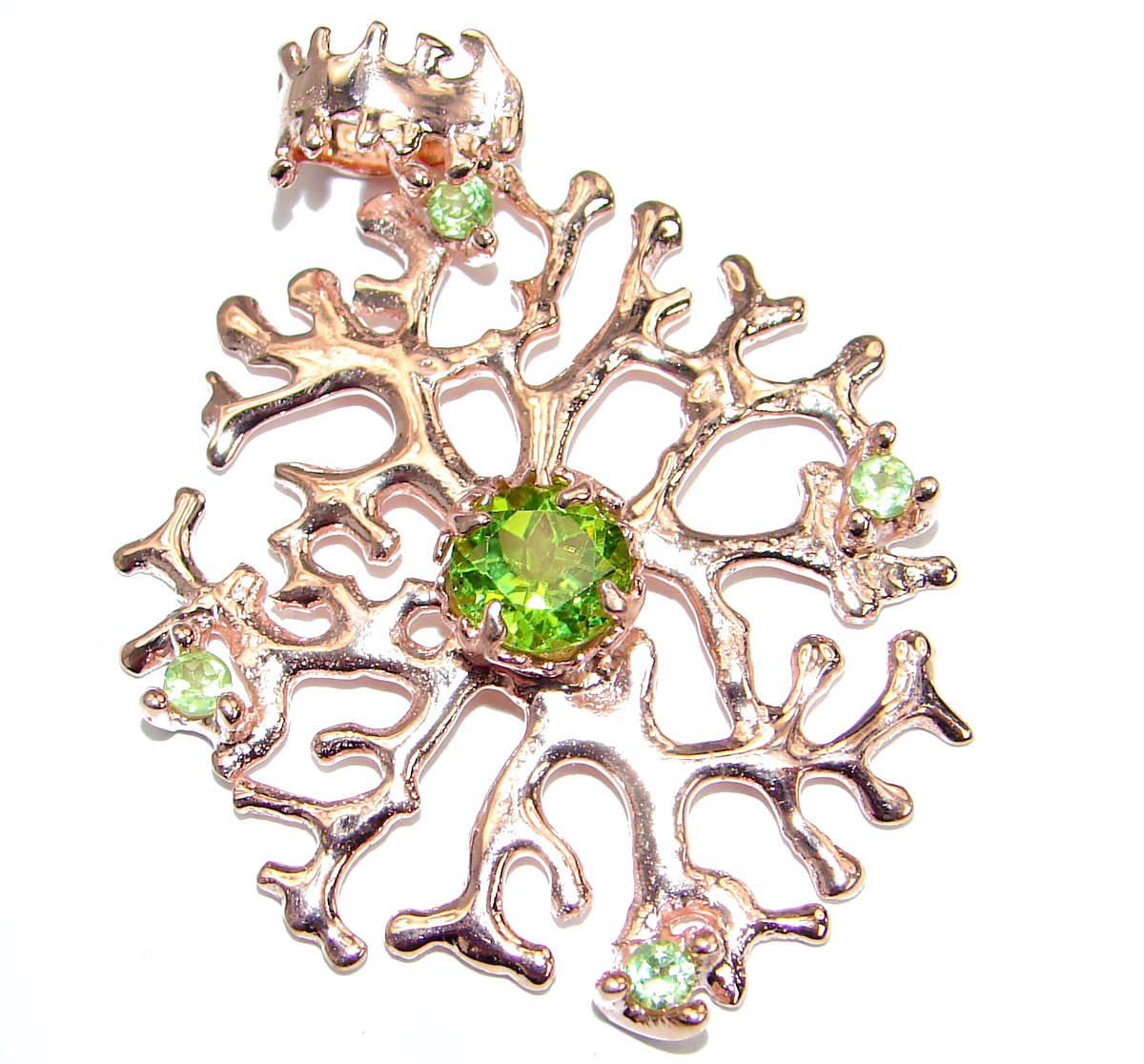 Unique design Green Peridot Gold over .925 Sterling Silver Pendant
