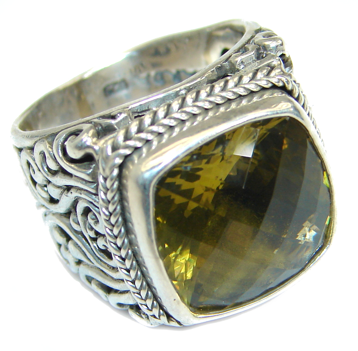 Bold Champagne Topaz .925 Sterling Silver Ring size 7