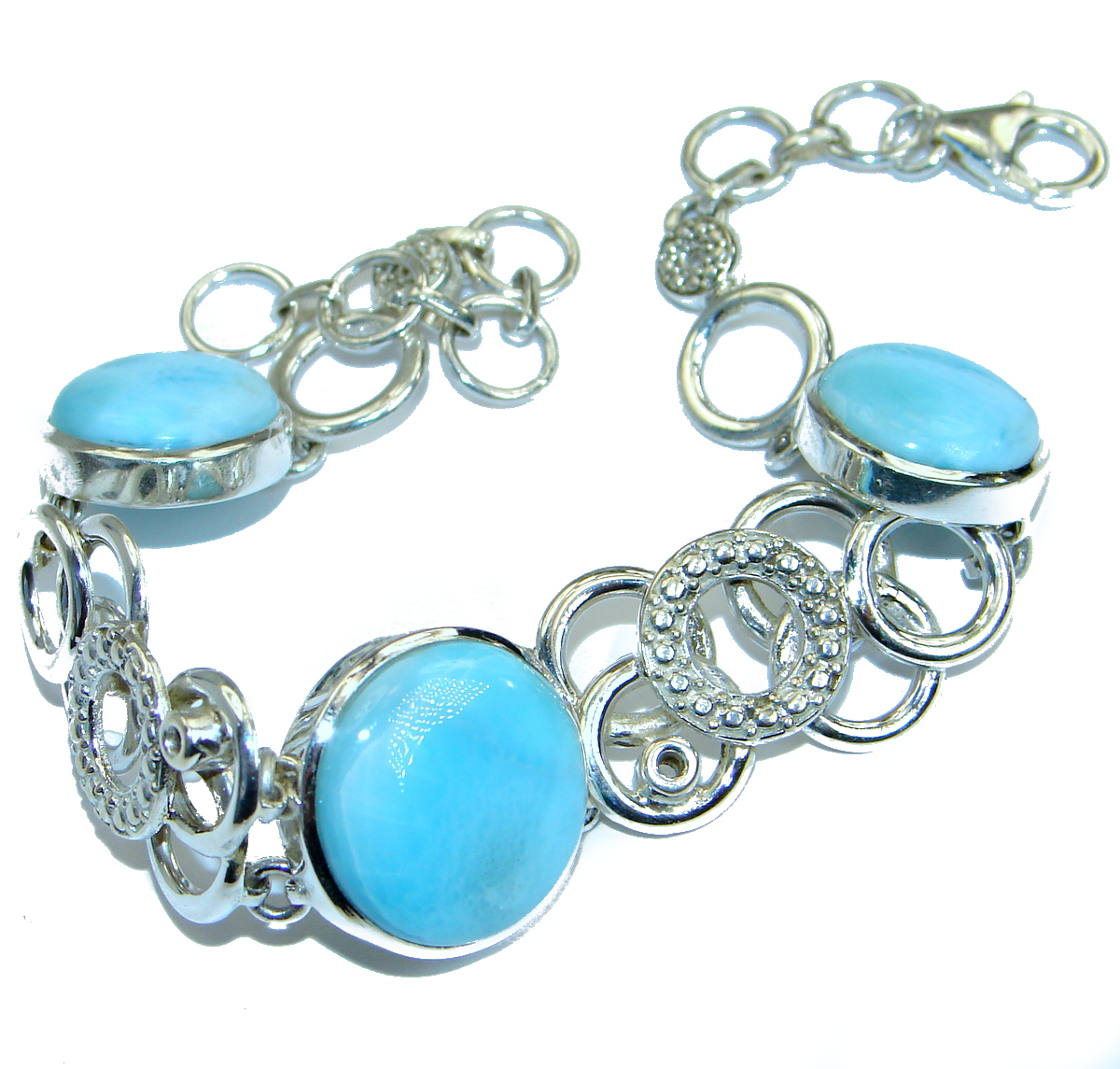 Luxury Genuine Larimar .925 Sterling Silver handmade Bracelet