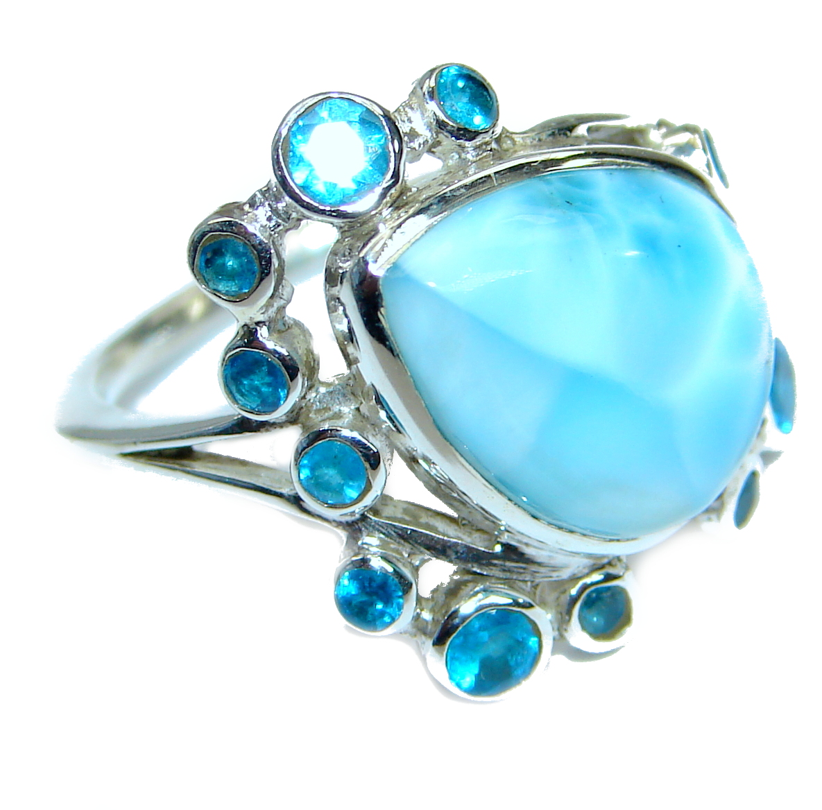 Natural Larimar .925 Sterling Silver handcrafted Ring s. 7 1/2