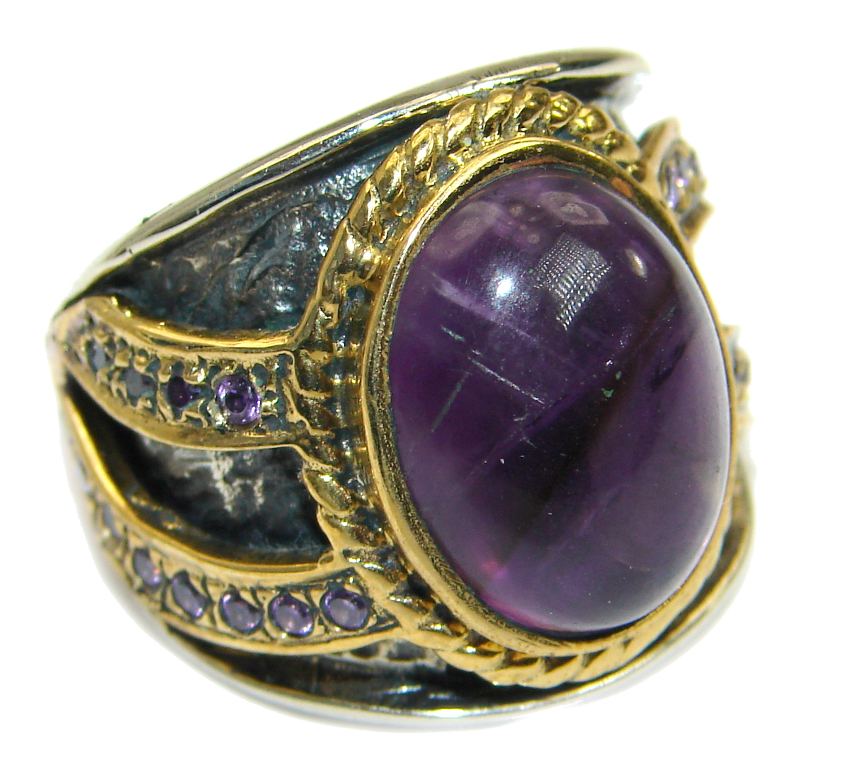 Bold Authentic Amethyst .925 Sterling Silver handmade Statement Ring s. 7