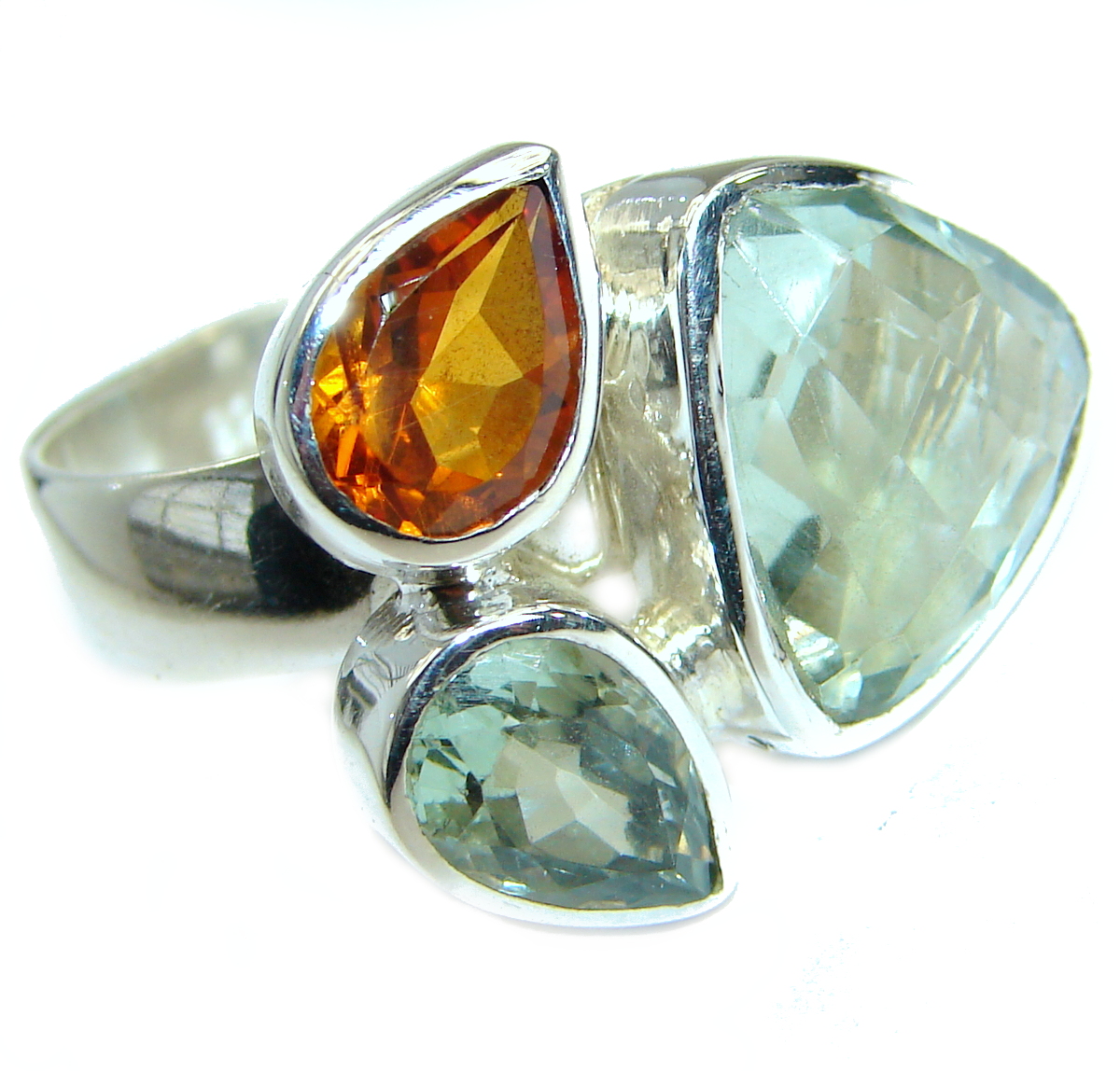 Natural Green Amethyst .925 Sterling Silver handmade Cocktail Ring s. 6 adjustable