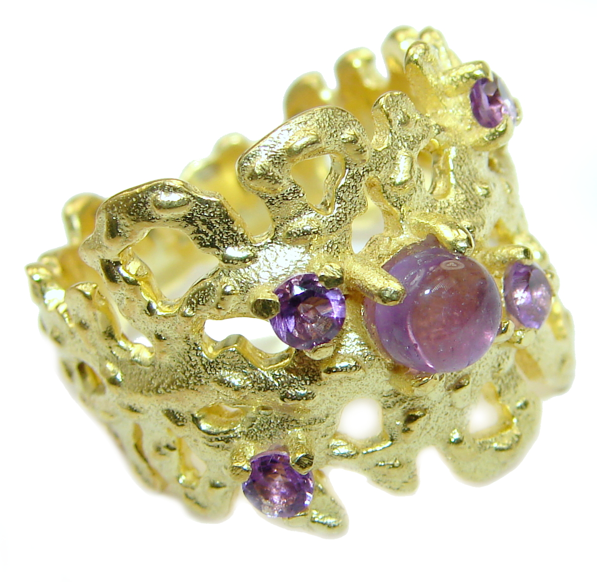 Natural Amethyst 14K Gold over .925 Sterling Silver handmade Cocktail Ring s. 7 1/4