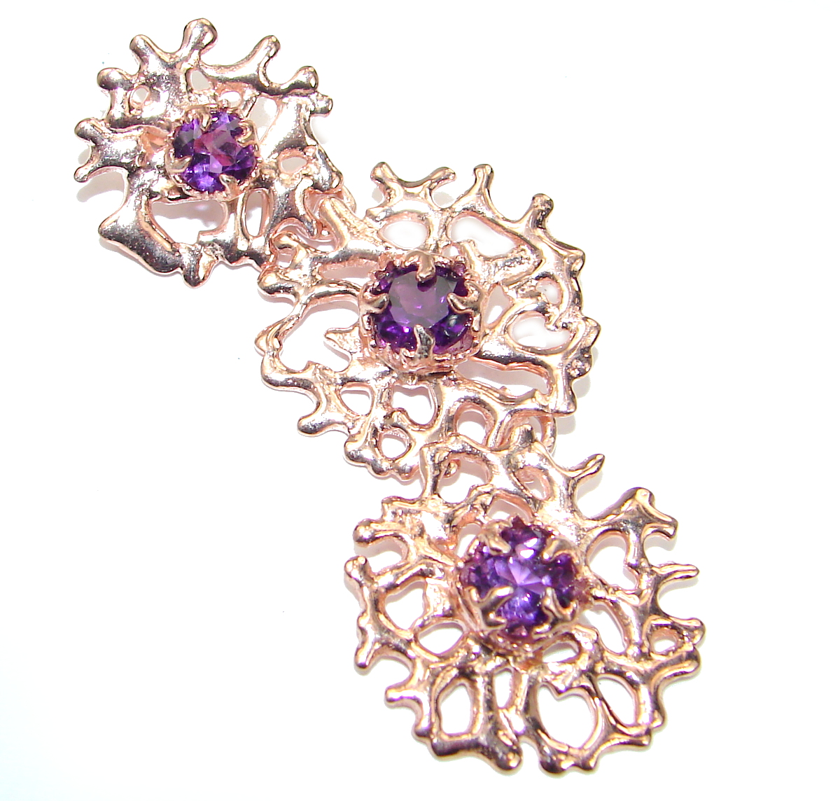 Natural Pink Amethyst Rose Gold over .925 Sterling Silver handmade Pendant