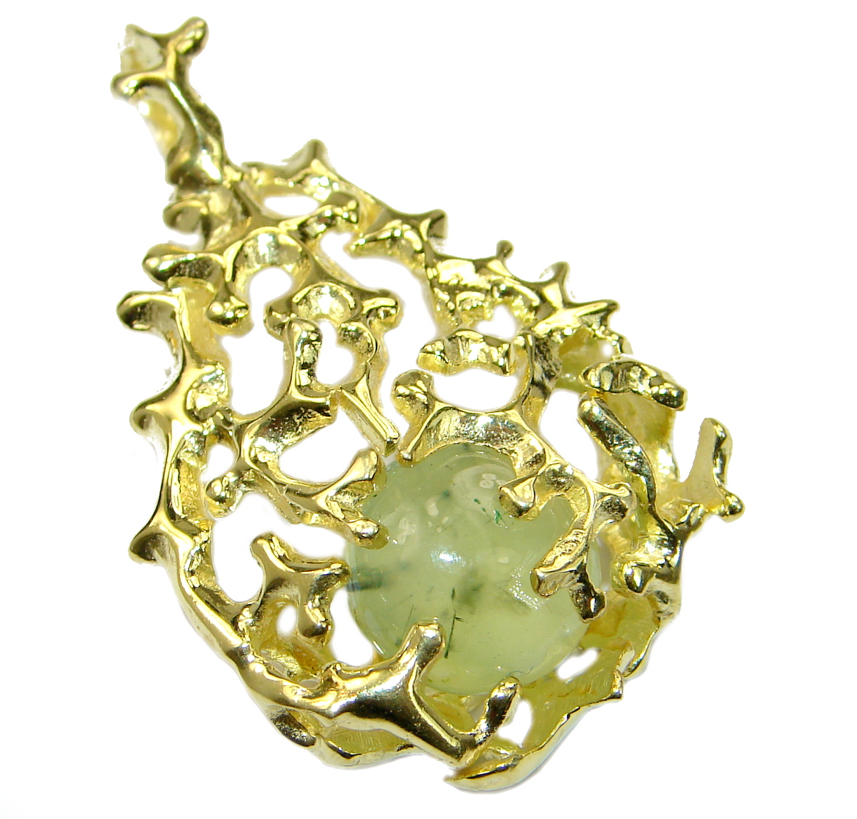 Authentic Prehnite 18K Gold over .925 Sterling Silver handmade pendant