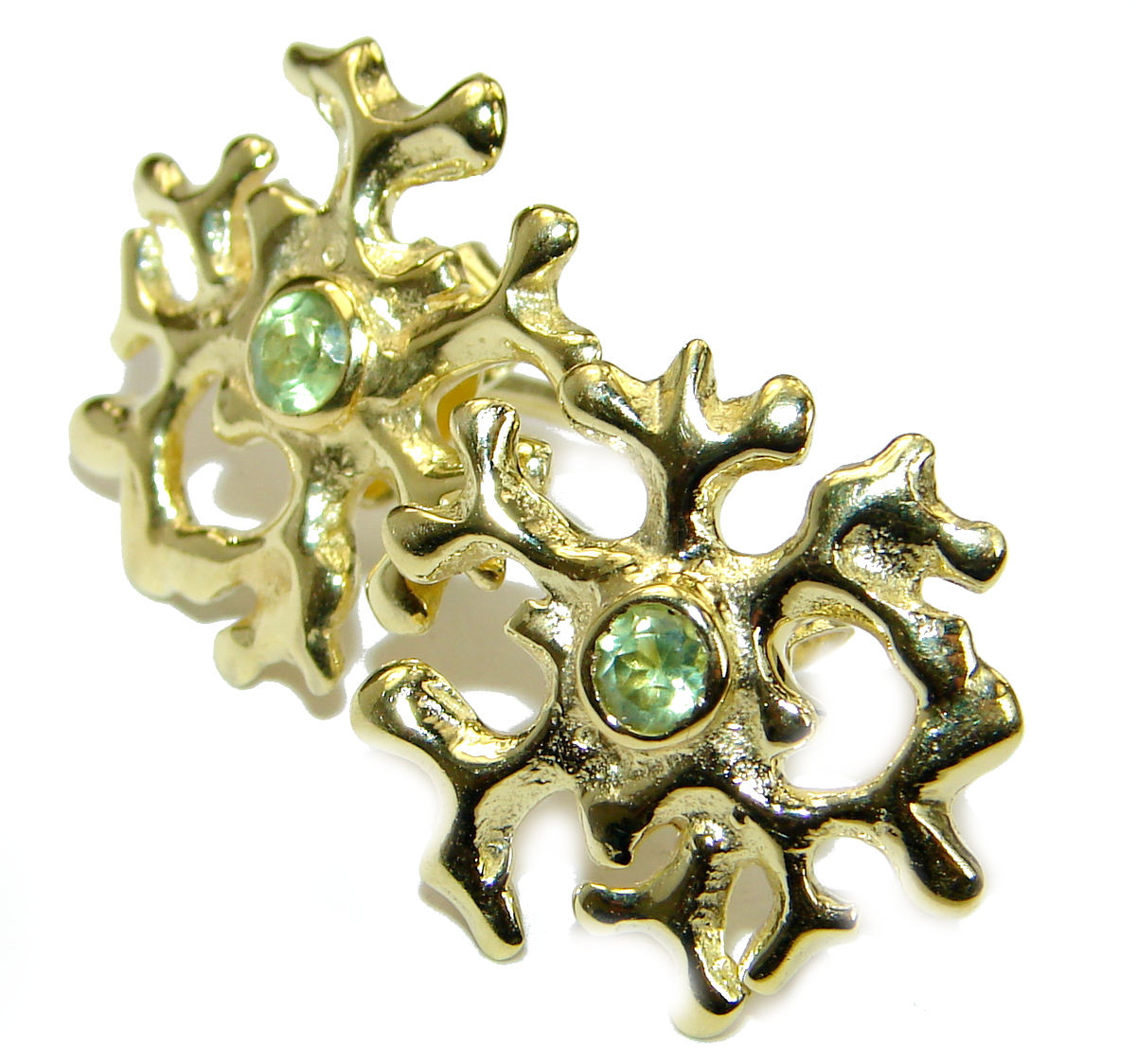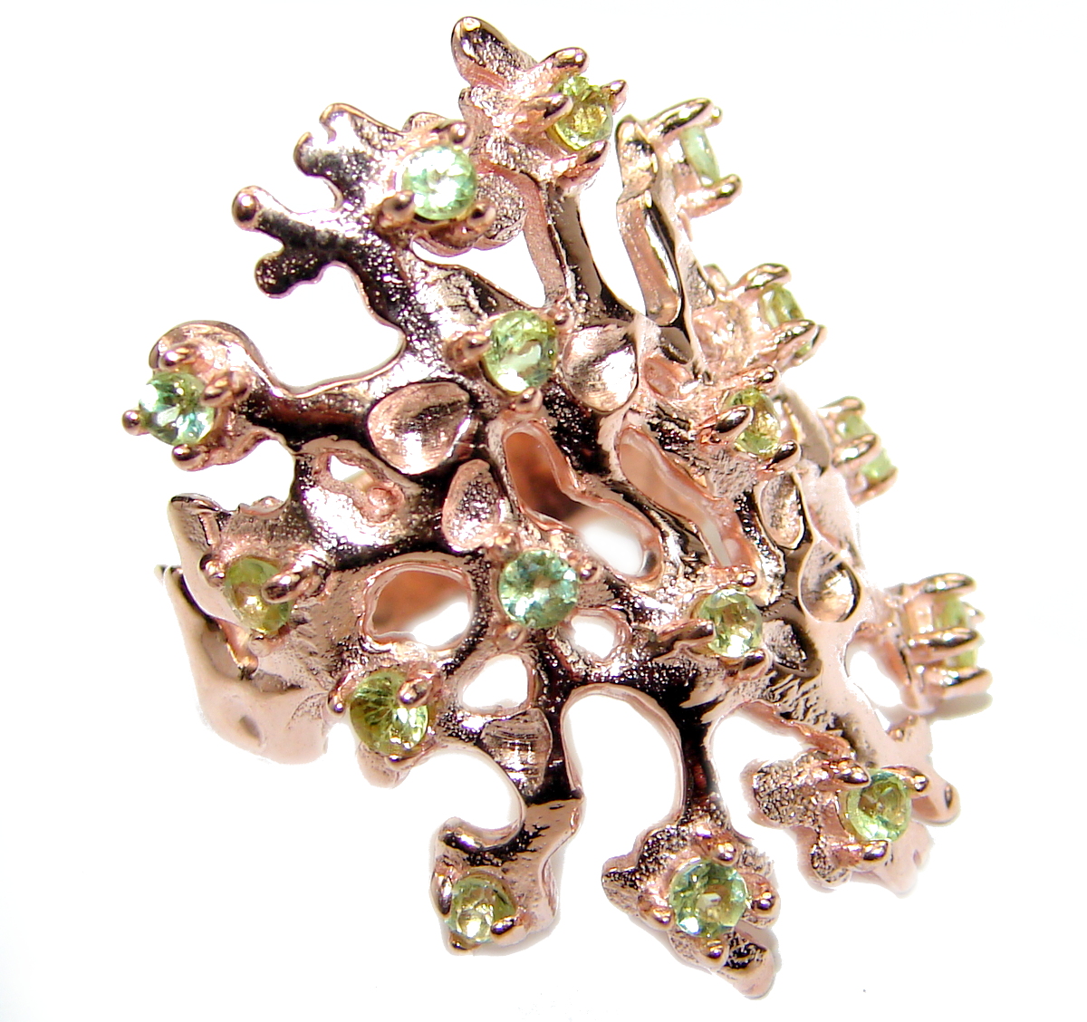 Unique Design genuine Peridot 14K Gold over .925 Sterling Silver handmade Cocktail Ring s. 6
