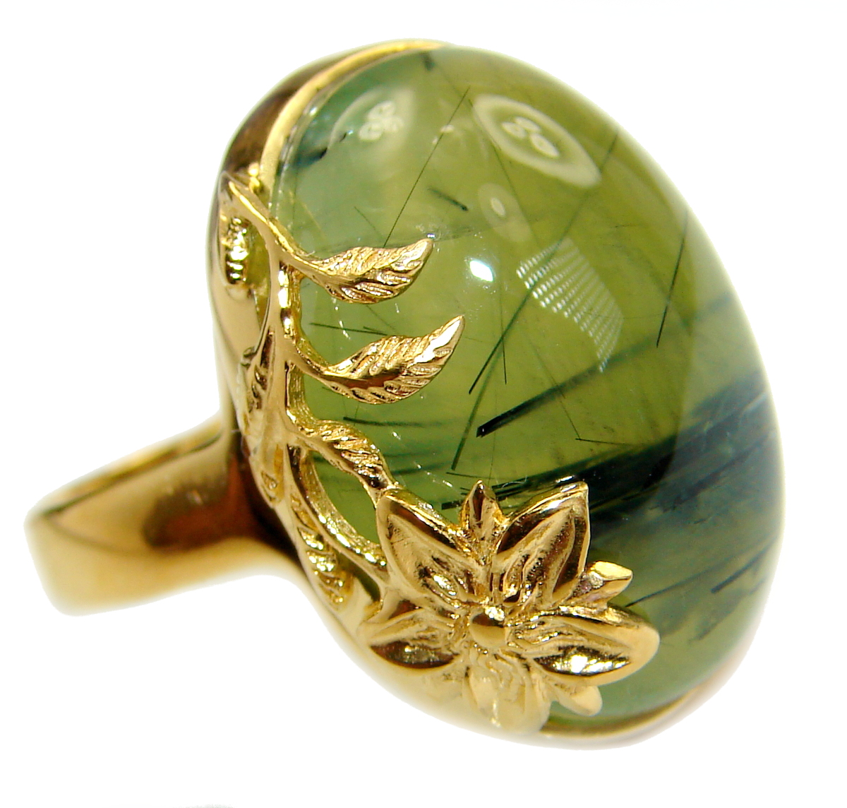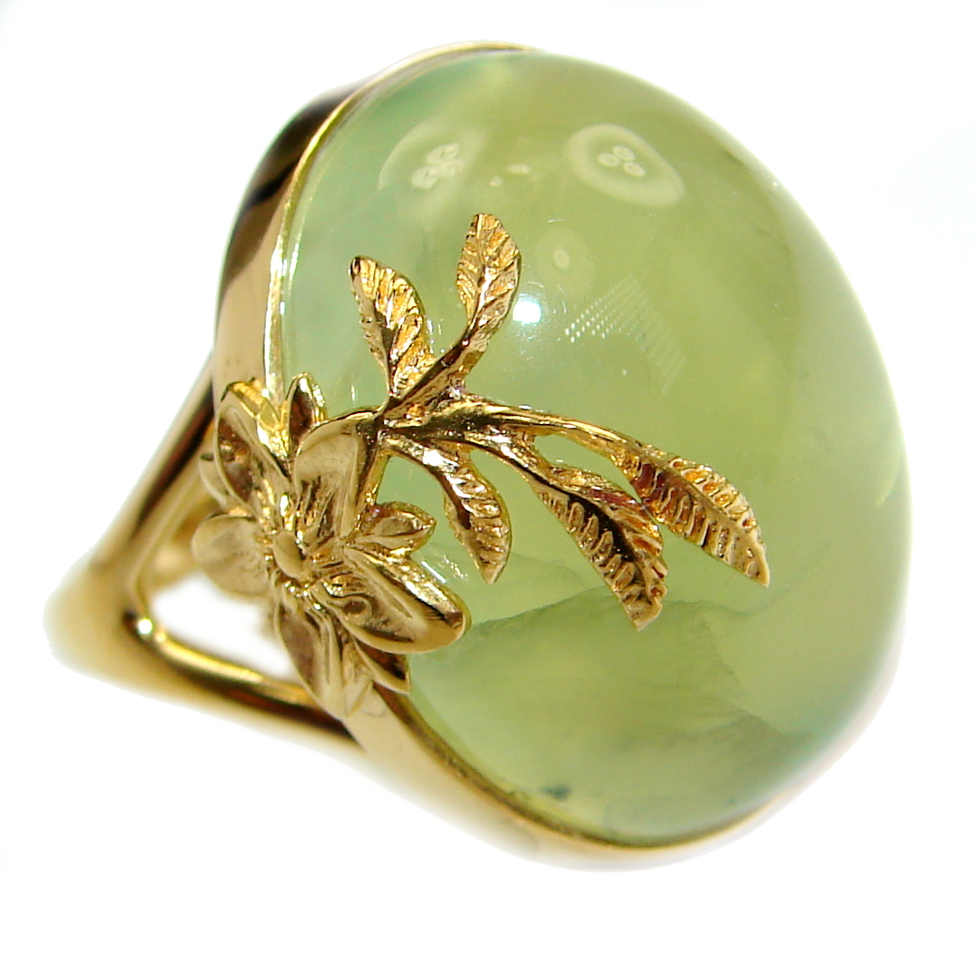 Prehnite 14K Gold over .925 Sterling Silver handmade Cocktail Ring s. 7 3/4