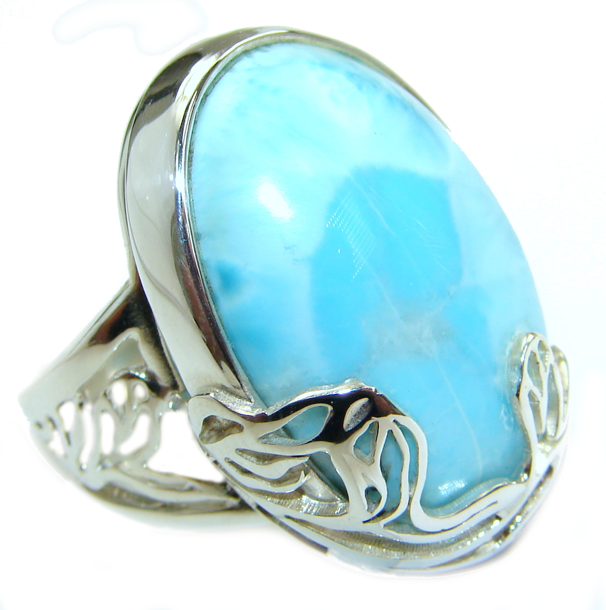 Bali Treasure Blue Larimar .925 Sterling Silver handmade ring s. 8 adjustable