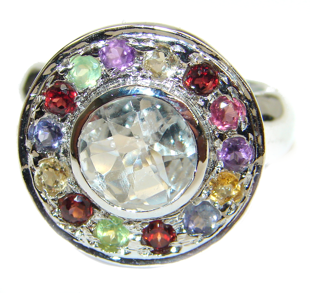 White Topaz .925 Sterling Silver handmade Statement Ring s. 8