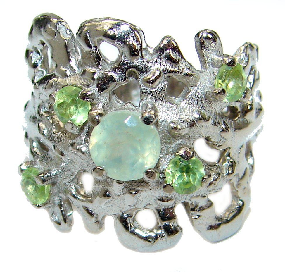 Great Prehnite .925 Sterling Silver handmade Cocktail Ring s. 6