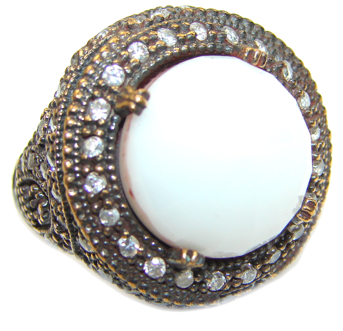 Victorian Style White Quartz Copper over Sterling Silver ring; s. 8