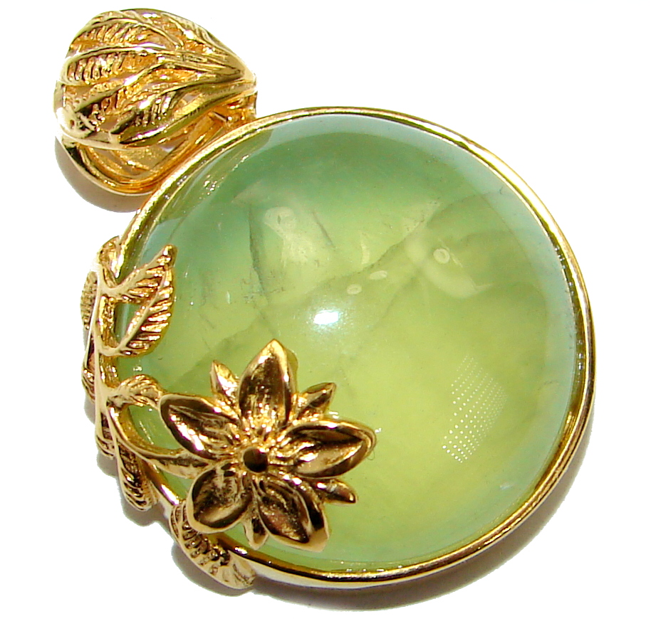 Authentic Moss Prehnite 18K Gold over .925 Sterling Silver handmade pendant