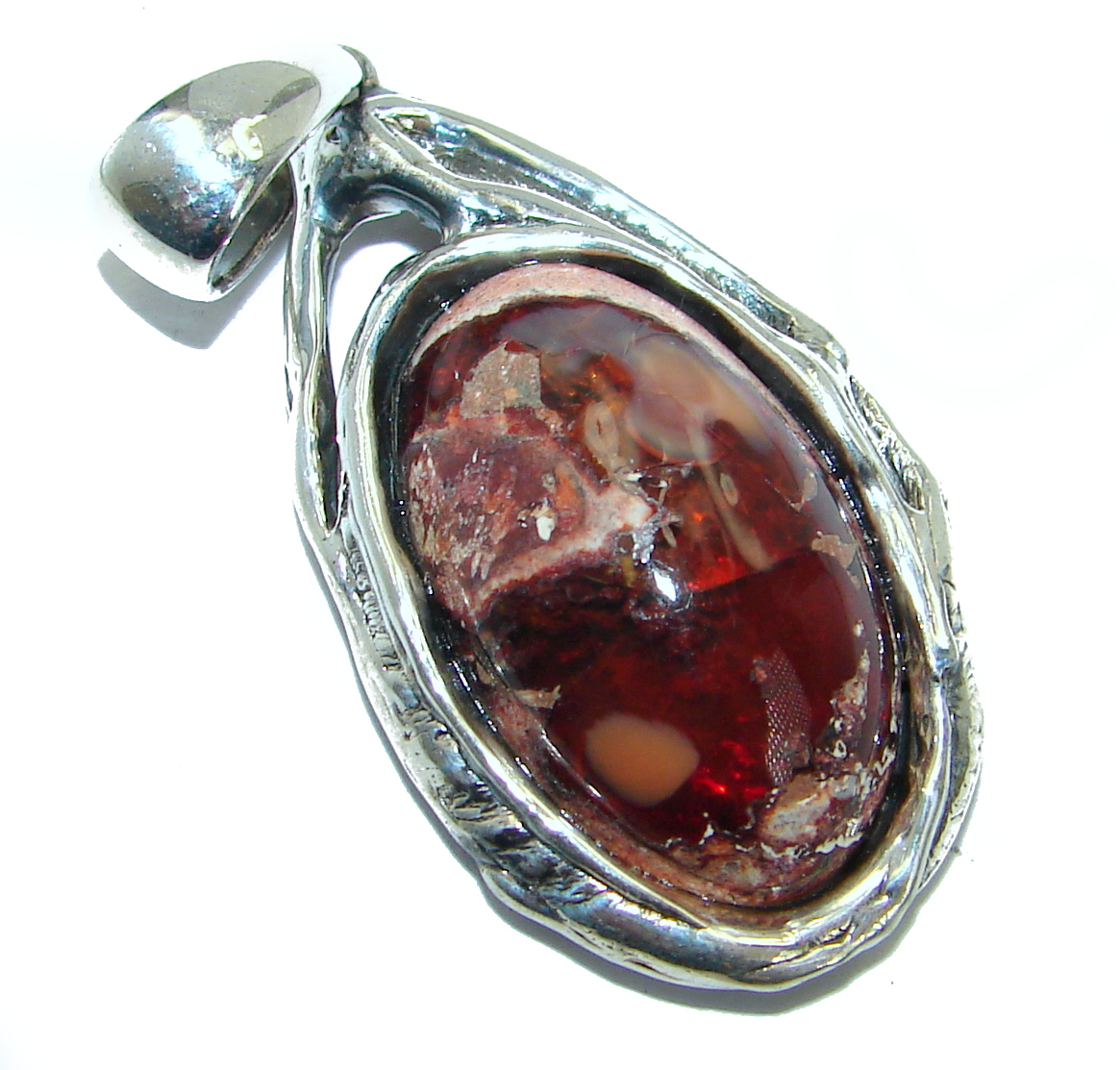 Natural Mexican Fire Opal .925 Sterling Silver handmade Pendant