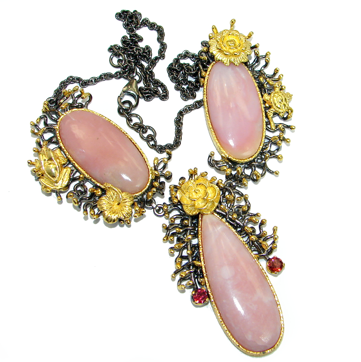 Bohemian Style Argentinian Pink Opal 18K Gold over . 925 Sterling Silver handcrafted necklace
