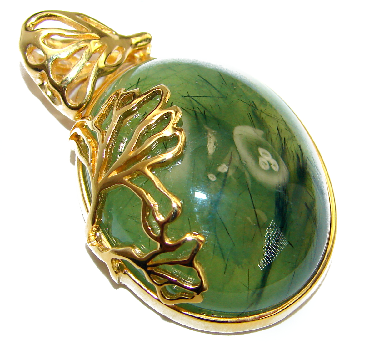 Authentic Moss Prehnite 18K Gold over .925 Sterling Silver handmade pendant