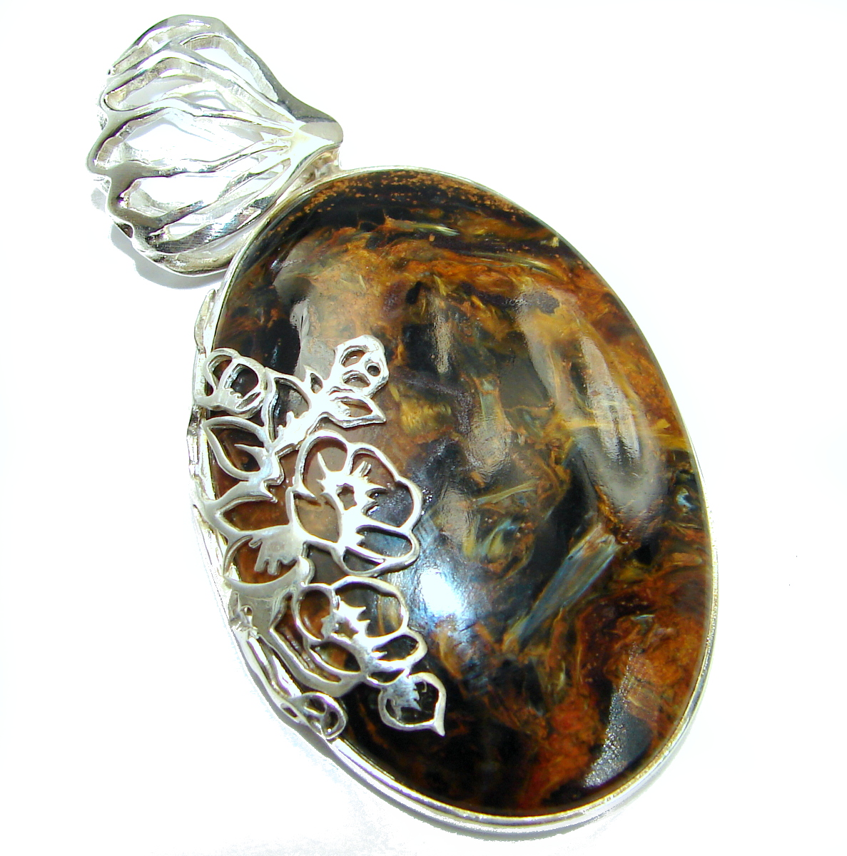 Genuine Silky Black Pietersite .925 Sterling Silver handmade pendant