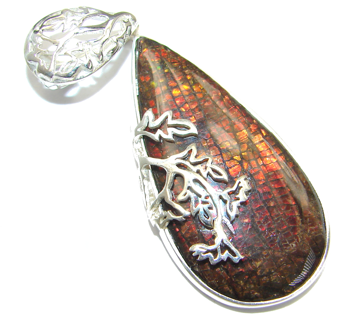One of the kind genuine Ammolite .925 hammered Sterling Silver Pendant