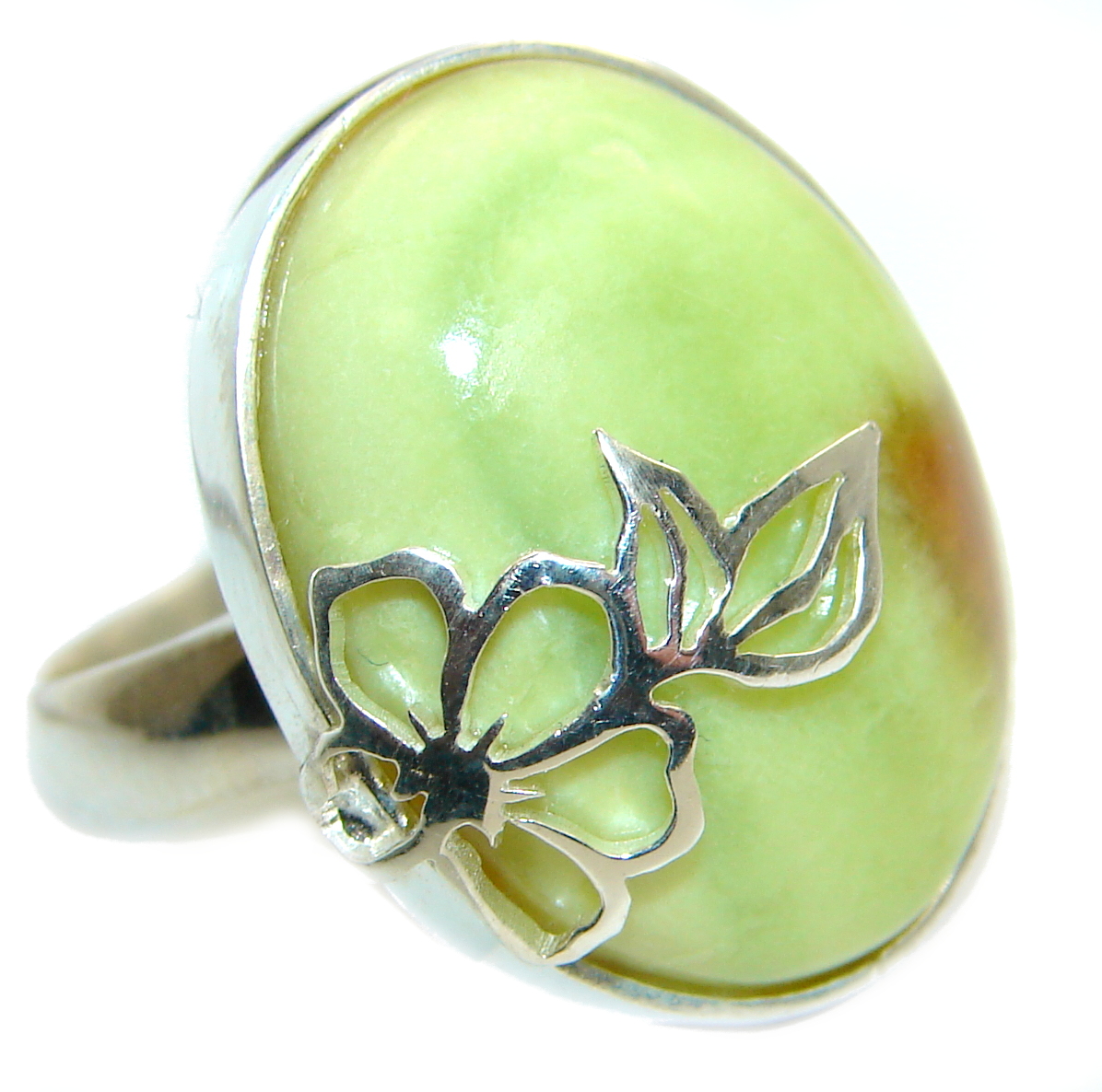 Natural Beauty Green Opal .925 Sterling Silver handcrafted ring s. 8 adjustable