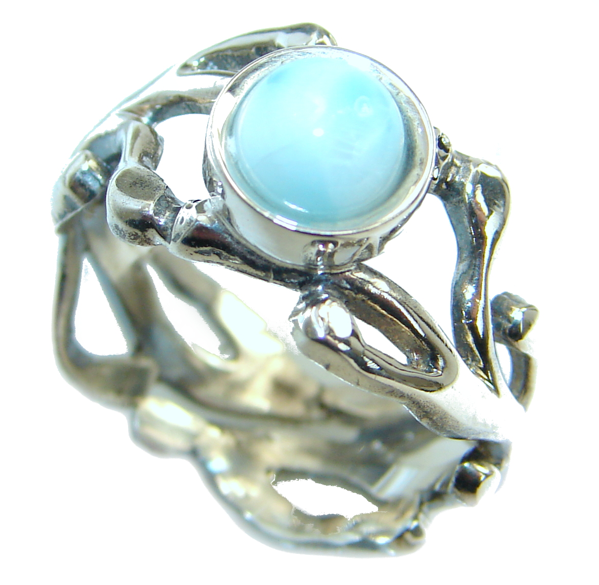 Natural flawless Larimar .925 Sterling Silver handcrafted Ring s. 8 adjustable