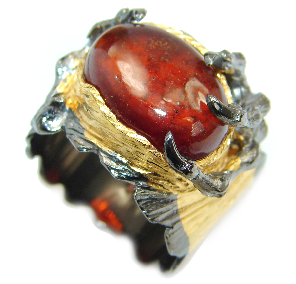 Spider Garnet 14K Gold over .925 Sterling Silver handmade Cocktail Ring s. 8