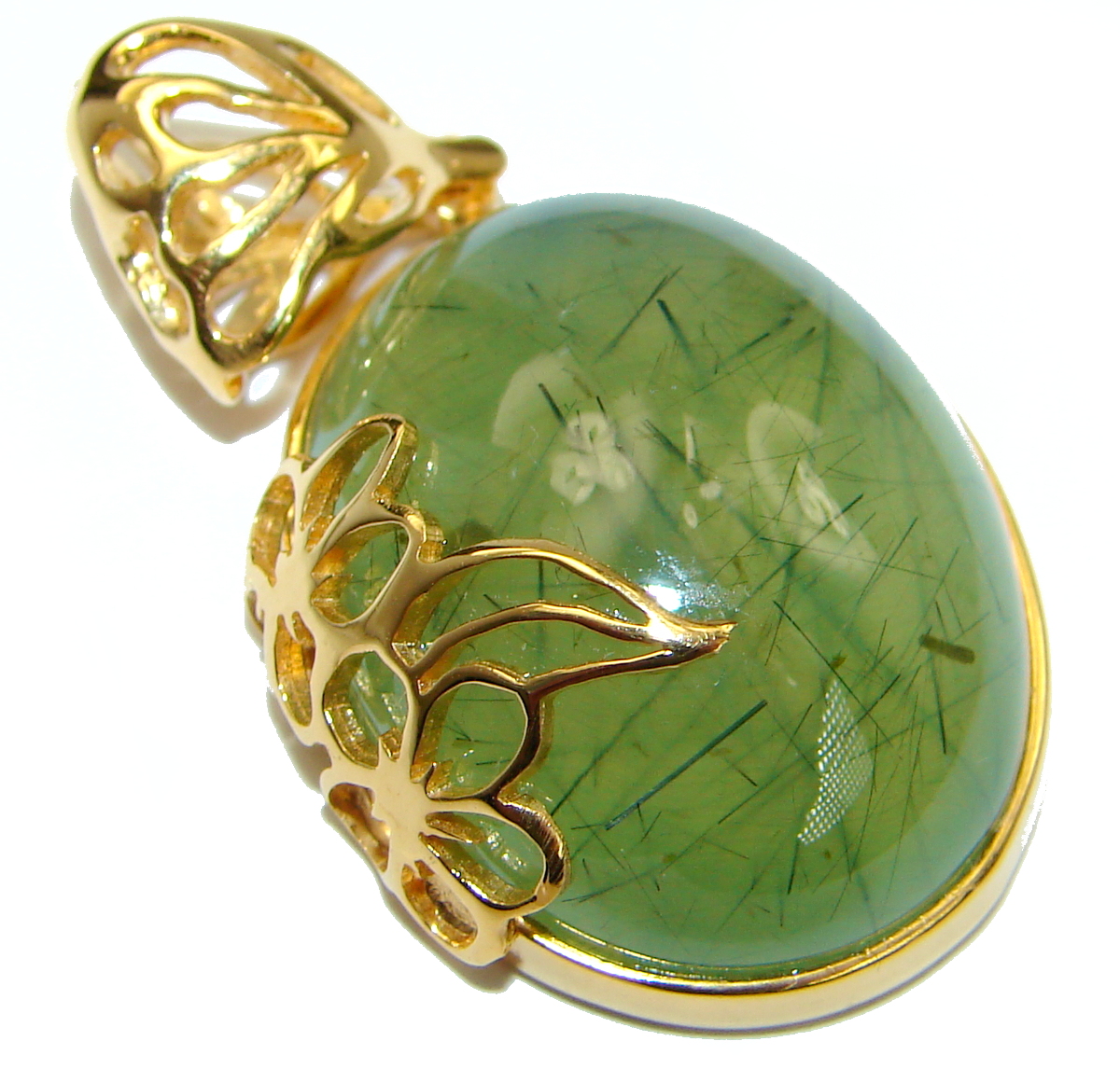 Authentic Moss Prehnite 18K Gold over .925 Sterling Silver handmade pendant