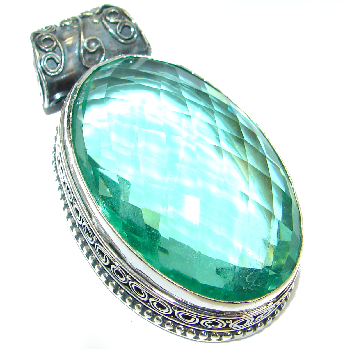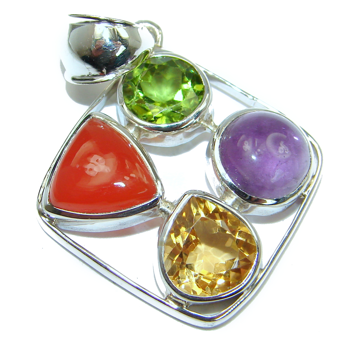 Vintage Style Beauty Genuine Multigem .925 Sterling Silver handcrafted Pendant