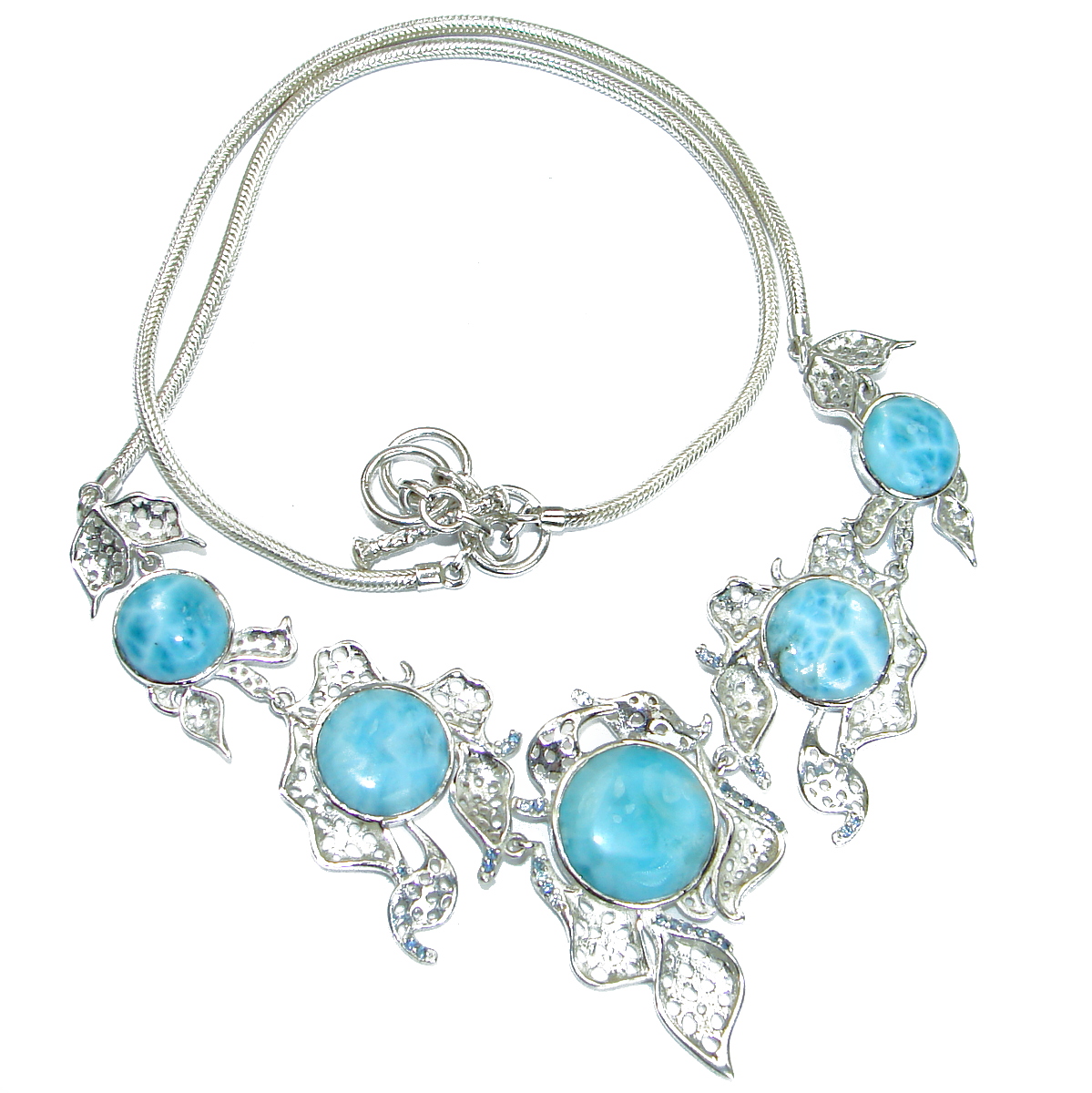 Great Masterpiece genuine Larimar .925 Sterling Silver handmade necklace