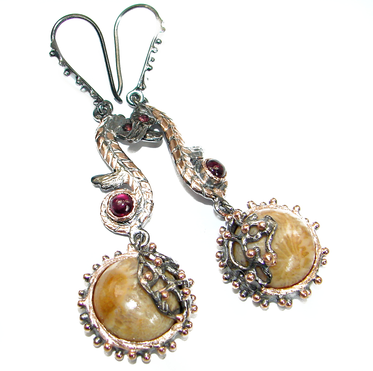 Huge Boho Style Genuine Fossilized Coral .925 Sterling Silver handmade earrings