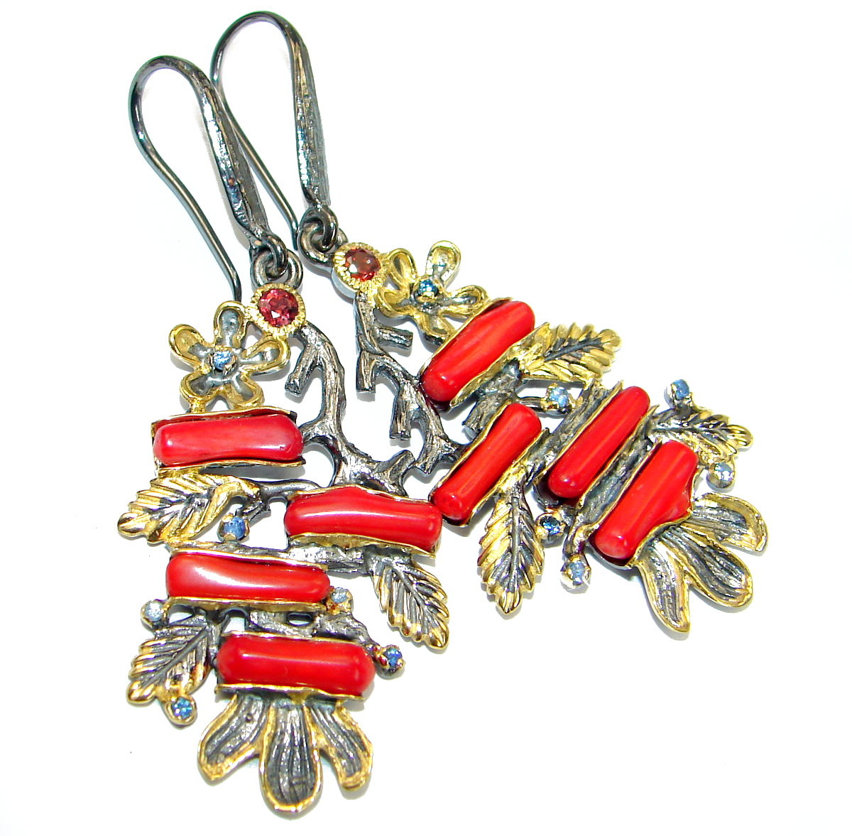 Authentic Juicy Garnet 14K Gold Rhodium over .925 Sterling Silver handmade earrings