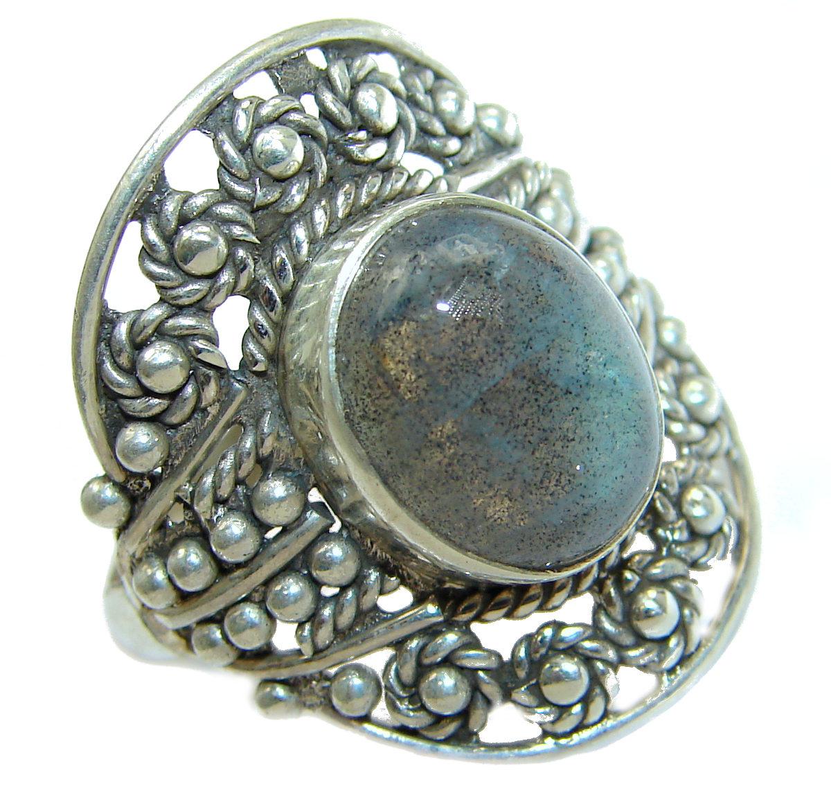 Fire Labradorite .925 Sterling Silver handmade ring size 9