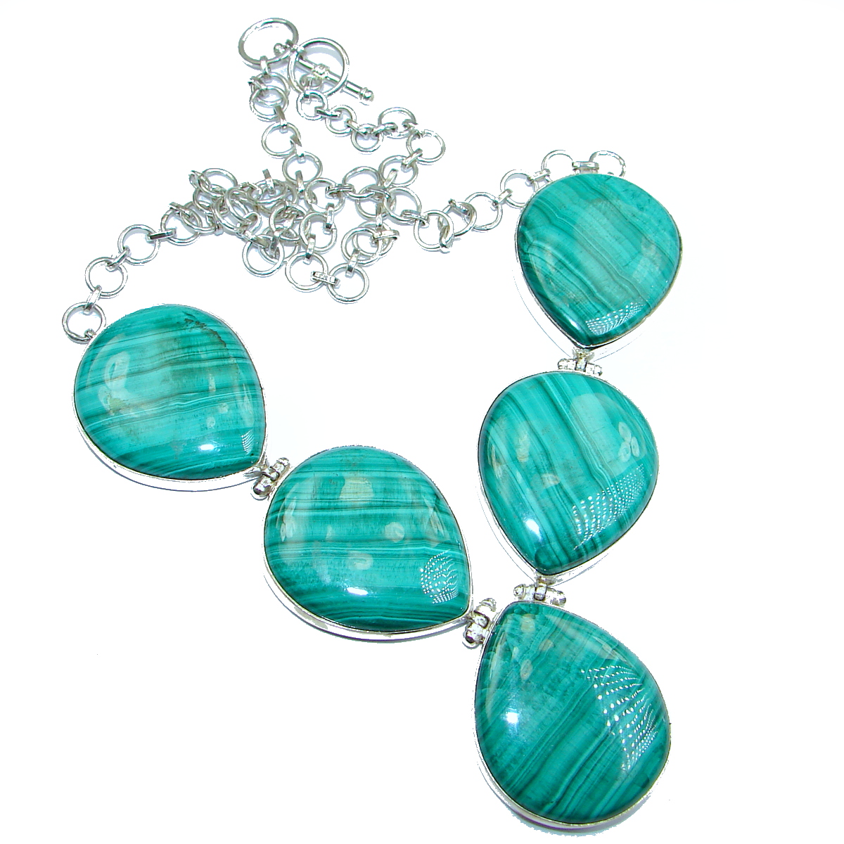 Very Unusual Green Malachite .925 Sterling Silver handmade necklace